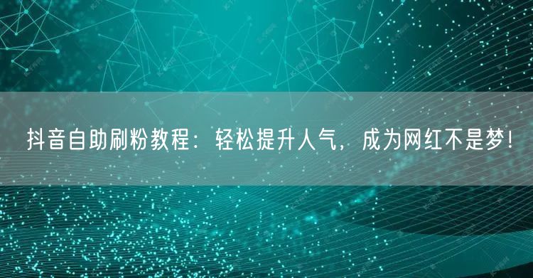 抖音自助刷粉教程:轻松提升人气,成为网红不是梦!