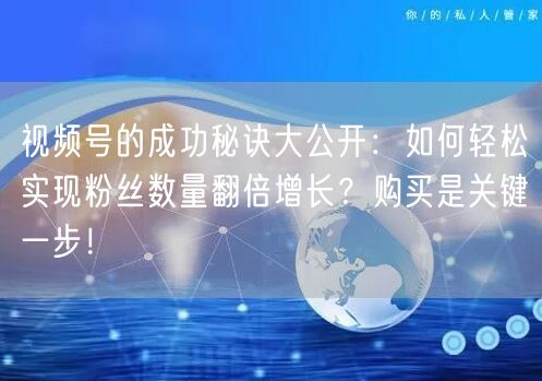 视频号的成功秘诀大公开:如何轻松实现粉丝数量翻倍增长?购买是关键一步!